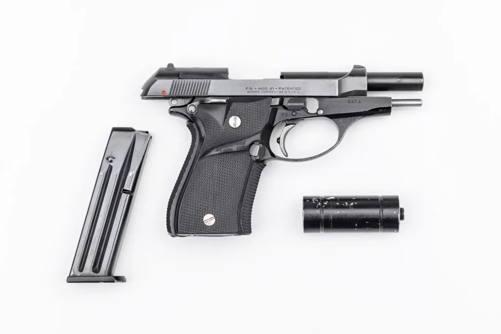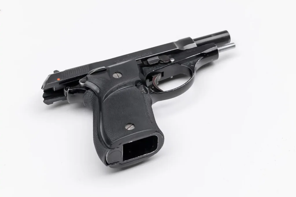 The Tony Montana personal live fire sidearm is truly iconic being that it was used during his rise to power. The Beretta is a fully functioning live fire Beretta 81 cheetah. His personal firearm can be seen from his first deal at the Sunray Motel in Miami Beach, Florida. The Beretta is subsequently shown in the Babylon Club shootout, the aftermath at the Mercedes dealership were both Frank and Mel were killed. And again after this, it was shown in a tan holster on Tony’s back when he was with his attorney. While not shown, it was then written into the script for the botched bombing, and then immediately afterwards, the killing of Manny his best friend. The gun is then seen on his desk in his Miami Beach private villa during the climactic final scene of the film.